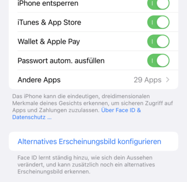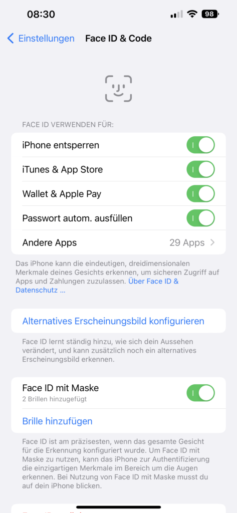 Im Anschluss sollten Sie das Menü „Face ID & Code“ sehen.