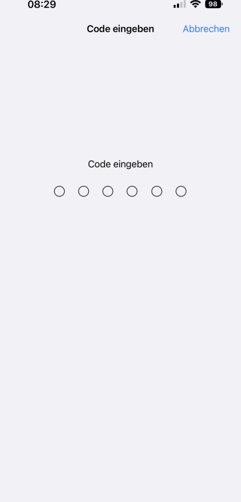Sie werden aufgefordert Ihre Geräte-PIN einzugeben.